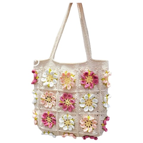 Nouveau sac en crochet fait main à la mode du fabricant pour femmes décoration florale pochettes en coton sacs à main fermeture éclair sac fourre-tout décontracté